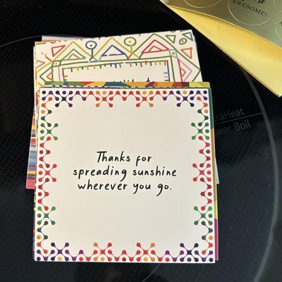 [This review was collected as part of a promotion.] I couldn’t be happier! Each card is a tiny burst of positivity that’s perfect for brightening someone’s day - whether it’s for friends, co-workers, teachers or yourself! The design is clean, cheerful and eye catching without being overly flashy. The messages are simple yet powerful. The cardstock is surprisingly solid and envelopes are great as well. Highly recommend! I received an incentive to write this review.