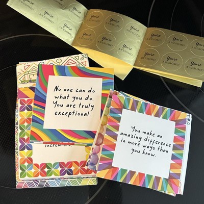 [This review was collected as part of a promotion.] I love these mini motivational cards. They are the perfect size to slide in a pocket, book bag, lunchbox or desk drawer. They have a gold seal sticker that says you’re awesome! Each card has a envelope included to seal your message. There is a message on the front of the card and space on the back to write a personalized message. This is a great way to spread some positivity and cheer to anyone’s day! I received an incentive to write this review.