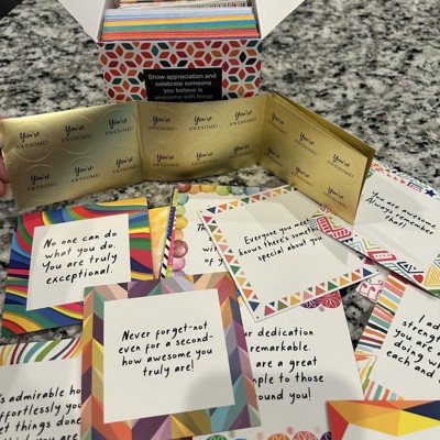 [This review was collected as part of a promotion.] This little box of affirming cards has been so sweet to share in my 9 year old son’s snack bag. One side of the card has a touching, specific and meaningful appreciation and the other side is mostly blank to write on. There are lots of options (I forget exactly how many cards but it’s a lot), a few different options for colors of the envelope and a little sticker to close the envelope. Would also be a great thing to have as a supervisor or teacher. I received an incentive to write this review.