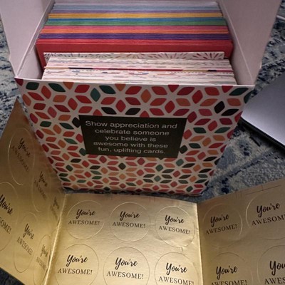 Inspirational words like “You spread magic wherever you go” and other words will encourage your employees, coworkers, students, or family. These little cards also make great lunchbox notes for kids and adults. Our set of inspirational pocket cards comes with 60 mini cards, 60 colorful envelopes, and gold seals with the words “You’re Awesome” on them. Store everything in the sturdy storage box.}