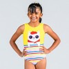 Spend your gymnastics class with your favorite furry friend in this bright, fun gymnastics leotard for girls. Fur-Ever French features a stylish furry bestie adorned in a neck scarf, beret and daisy sunnies. Stripes of red, pink, blue, and yellow make this practice leotard pop. Designed with comfort in mind, this gymnastics leotard is crafted from lightweight, highly breathable four-way stretch fabric for superior flexibility and mobility. Matching scrunchie included.