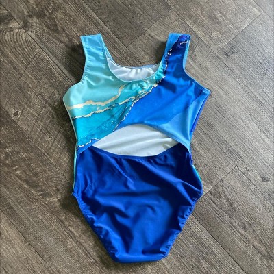 This leo is well made and very cute. The design of the open back was the final push I needed to order this. The colors (blues, turquoise and pops of gold) look really good together. The adult small fit my 4’10” 11year old great. A little room to grow, not too tight. This is our first leo from this brand but will buy again.