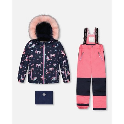 Deux par Deux Girl Two-Piece Discover Snowsuit with Printed Jacket Light Blue