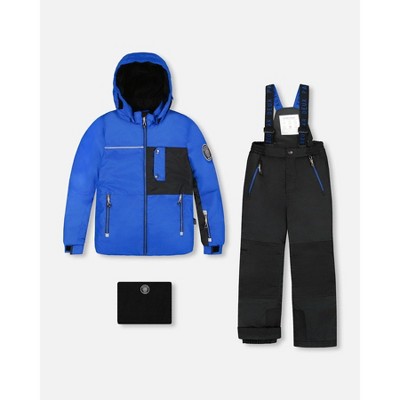 Deux par Deux Girl Two-Piece Play Snowsuit with Multicolor Print Jacket and Solid Pant Black - 12 Years