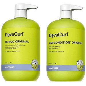 - This kit contains a 2 piece set which includes: (1) DevaCurl No-Poo Original Cleanser Shampoo, 32 oz XXL LITER & (1) DevaCurl One-Condition Original Conditioner, 32 oz XXL LITER DUO SET Kit | Deva Curl