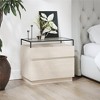 - ELEGANT BEDSIDE TABLE WITH GLASS TOP DISPLAY: The nightstand boasts a sleek tempered-glass top display with a wooden surface beneath, creating a sophisticated look that enhances any modern industrial or contemporary bedroom décor