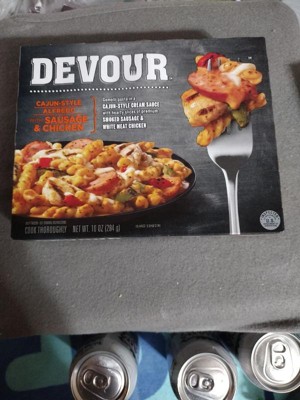 - One 10 oz box of DEVOUR Cajun Style Alfredo With Sausage & Chicken Frozen Meal