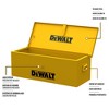 - This 30" DeWalt Utility Box is the perfect option for the storage of power tools, equipment and more. Finished in a yellow satin finish (paint has UV inhibitor) with black steel swing up handles and cosntructed of steel, this utility box is durable and reliable to accompany you at your job sites. The box is also constructed with a full length steel piano type hinge and one plastic grommet on the side of the box. Your tools and equipement will be secure with the locking mechanism of a hasp with a staple for a padlock. Keep the lid open while working with the included tether. This heavy duty utility box can hold up to 100lbs.