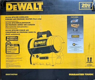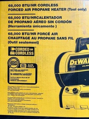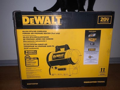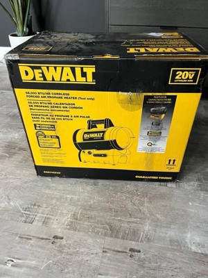 DeWalt 68,000 BTU 20 Volt Battery Start Portable Cordless Propane Space Heater with Quiet Barrel Forced Air Design for Job Site and Workshop