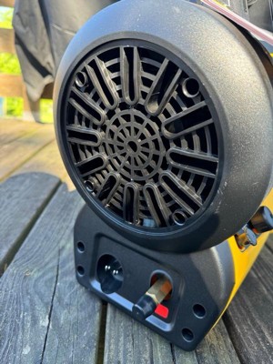 [This review was collected as part of a promotion.] The heat output from this propane heater is great. This heats up a large room in no time. We used this to heat our two stall garage that has no heat. We’ve also tried this out as a heat source while sitting on our deck in the cooler weather. It’s amazing how much heat comes from this. Extremely quiet. Love the versatility of using the battery or electric outlet. Lightweight and easy to transport. Had no problem with the starter.