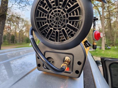 [This review was collected as part of a promotion.] I’ve been using this in my garage and it heats it up fast! It really kicks out the heat and it’s adjustable as well so will turn it down a bit after the garage is warmed up. I love that it has a compact design and very portable. It’s not to heavy and starts easily. I used mine plugged in with an extension cord but love that it has the option for battery also. Overall a great heater with the quality I would expect from Dewalt.