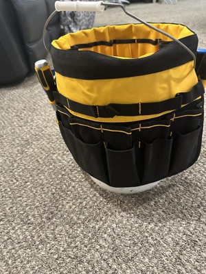 [This review was collected as part of a promotion.] I got the bucket buddy and installed it on a bucket and loaded it full of tools so many spaces hard to organize because I’m so often between projects and so many options I love it fit over the bucket perfectly feels extremely durable stitching. I like the rubberized membrane around the top to help protect it, and then I had to unload it and move cross country and look forward to using it again