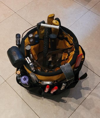 [This review was collected as part of a promotion.] This isn’t something I would typically use as there are plenty of bags out there now. But I have to say this is pretty cool. More than enough pockets for all my tools. Seems sturdy and pockets are tall enough to hold my taller and bigger tools. Holds my 12” sawzall blades easily. I actually reallly like the fact that I can carry my tools out in the bucket and pack up all the trash in the middle on the way out. It’s my new plumbing bag for fixing leaking water pipes when excavating. Keeps everything organized and easily visible to quickly grab and go. Hold the glue in the bucket and primer which gets everywhere… yet it doesn’t matter cause it’s in a bucket. Not in an expensive bag or case. Really like the quality and seems really durable and to last the rest of my life. I’d recommend one if you need to keep tools and leaking stuff packed in the same unit for a job.