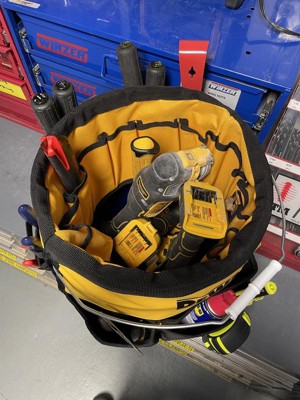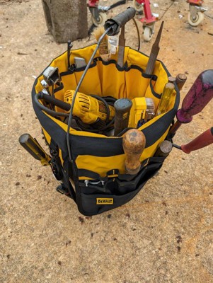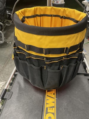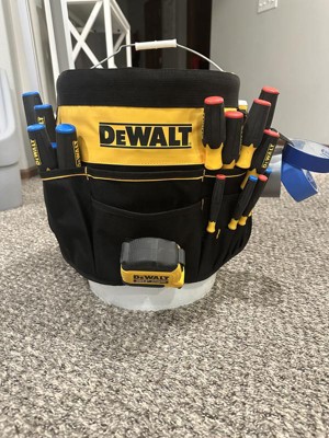 Access tools, accessories, hardware, and more with the DEWALT Bucket Tool Organizer. Constructed of durable materials, this top-of-the-line storage solution keeps everyday essentials organized and at the ready with 37 pockets and loops. Featuring wide-open structured pockets and hi-vis internal fabric, this Bucket Tool Organizer conveniently fits on 5-gallon buckets commonly found on tough jobsites.