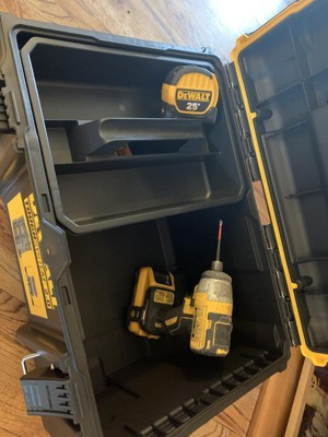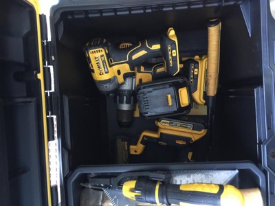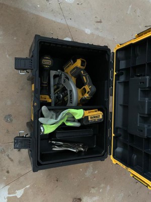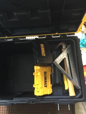 [This review was collected as part of a promotion.] It’s a tough built tool box with great handle features. It doesn’t fit most DeWalt tools though, which is odd.