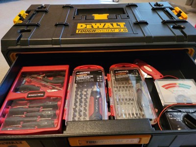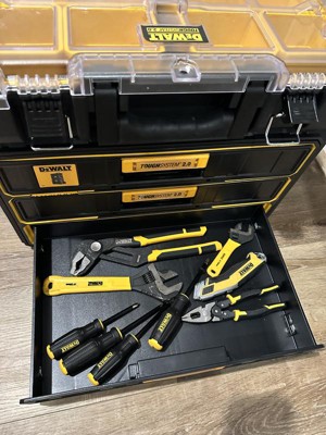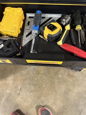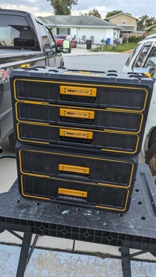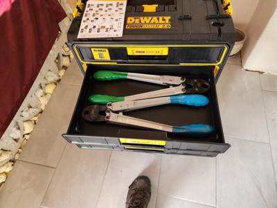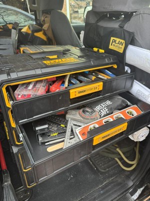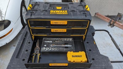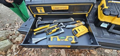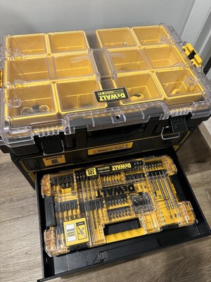[This review was collected as part of a promotion.] I want to start by saying that I have other dewalt storage boxes, I’ve been happy with them but never 100% satisfied with not having a place for everything in one unit. Enter this beast, it’s basically a toolbox, the storage is absolutely perfect to hold and organize all of my bits, drivers, etc. I’ve truly found a box that can handle it all and does it well. This box is very rugged and with that does come weight, it’s a heavy beast, I don’t mind that as I am sure it will help it last. The drawers slide in and out nice and easy and latch into place, the top as shown can accommodate other storage boxes attaching to it. If I had one thing that I don’t like it’s only that I wish the side handles were configured in such a way that they lifted up more, it’s a little awkward with them only going half way up and how you have to then hold them. I used to use dewalt tool bags for everything, now I’ll be switching to these for most of my hand tool solutions. Great job with this one dewalt. If you’re on the fence with this one, don’t be, I love mine.