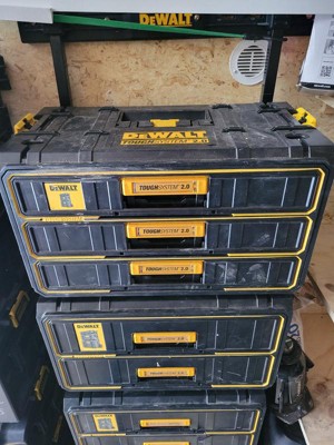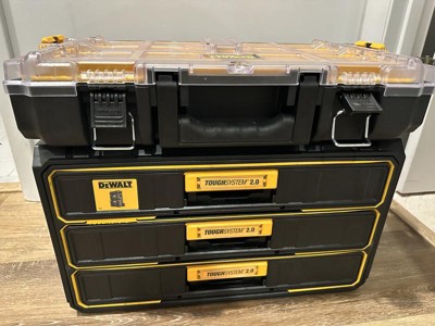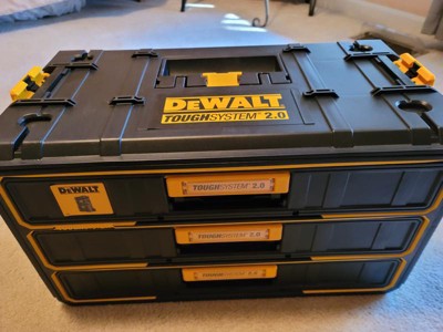 [This review was collected as part of a promotion.] The Dewalt three drawer case is a great addition to the product line. I have 4 two drawer cases and that for wrenchs, hand tools, and bits that the drawers were just a little too deep and they would be overpacked. The depth of the three drawer case is ideal for smaller tools. I have saved time by seeing and grabbing the right tool without having to look under other tools. I tested the water resistance by leaving the case out in the rain. After two days of consistent rain, the interior of the drawers were completely dry. The case is built very well. The drawers don’t flex under heavy loads and slide smoothly and consistently. The drawers latch securely and don't open accidentally. I tested connecting the gen. 1 drawers to the 2.0 system and i found 100% compatibility. The old style has a handle on top and the 2.0 system has fold down connector for smaller cases in the 2.0 system.
