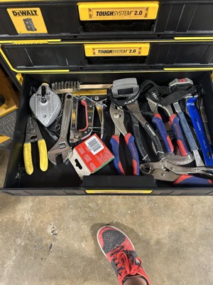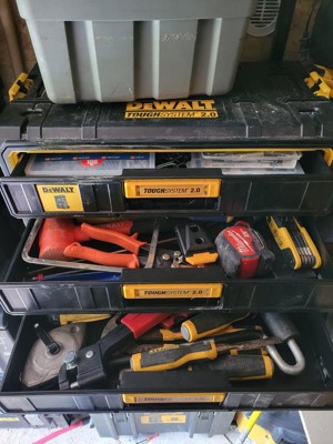The Dewalt Toughsystem 2.0 three drawer unit is a robust storage solution designed for organizing hand tools and small accessories. Its durable construction ensures longevity, while the smooth-gliding drawers provide easy access to tools. The gasket seals help protect contents from moisture, making it ideal for various work environments. However, the absence of a top handle has been noted as a drawback, impacting portability. Overall, it is a valuable addition for any guest seeking efficient tool organization.