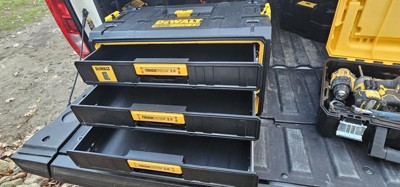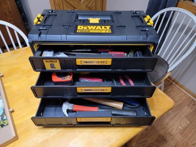 [This review was collected as part of a promotion.] The DeWalt 3 drawer tool box is just what I needed to keep my tools organized. It workes great paired with my dual drawer tool boxes. The 3 drawer box help me keep smaller tool visible by not burying g them all on top of each other like with the dual drawer boxes.