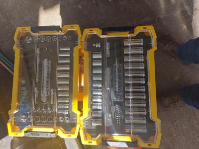 [This review was collected as part of a promotion.] Let me start with the storage. This is my first experience with DeWalt's ToughSystem and I am big on organization and being able to find tools and this system does just that. Even better, I can slide the tray that holds the sockets out and place it right in my toolbox. Then if I need to pack up some tools I don't have to throw a bunch of sockets in a bag. I just pick the whole tray up and put it in its' case. Yeah, big fan of the ToughSystem, because I hate having to walk back and forth to the garage to grab one more socket! Now the actual tools. The ratchets have some heft to them, which feels nice in the hand, but I worried about them being a little too heavy for small jobs. However, it is so well balanced that I can hold just the head of the ratchet for small bolts that require minimal torque with no problem. You can tell they thought about this because the head has smooth and rounded edges for comfort. The ratchet handles are also smooth with a slight rounding to them which is way more comfortable when you're having to put some force behind them. Cheaper ratchets have more squared handles that cut into your hand. The ratchets both have a fine tooth count which helps a lot when it comes to working in tight spots. The sockets seem to be made well, and there's a good variety of them in each case with both short and long sockets. Only other thing I'd like to see on the sockets is high visibility markings for the sizes. They are easy enough to see in normal conditions, but under a truck on a creeper, it's a little harder to see them from a distance. All in all, it's a high quality socket with great storage solutions!