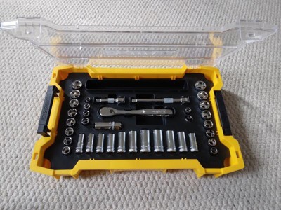 [This review was collected as part of a promotion.] This socket set has held up well with moderate use. The finish is comfortable, the case is durable, and the sockets grip well. I do really like the nut and bolt holding tray that comes built in. The ratchet is a 72 tooth which I’m surprised DeWALT didn’t go higher. I haven’t had any problems with this product.