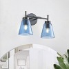 - Modern 2-Light Wall Sconce: Black iron body with stylish blue accents and seeded blue glass shades creates a modern farmhouse look, perfect for bathrooms, bedrooms, or hallways.