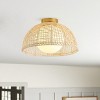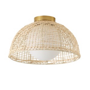 Dewdrop Boho Semi Flush Mount Ceiling Light 1 Light Woven Rattan Basket Shade E26 Compatible ETL