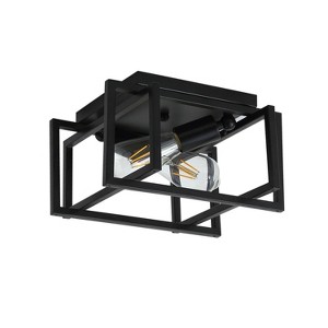 Dewdrop Industrial Black 2-Light Caged Shape Metal Ceiling Flush Mount