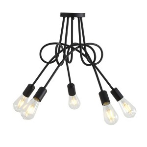 Dewdrop Modern Black 5-Light Curved Line Sputnik Design Ceiling Light