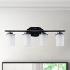Add modern industrial charm to your bathroom or vanity space with this 4-light wall sconce. Crafted from matte black iron with etched frosted glass shades, it blends durability with style while providing bright, even lighting. The fixture supports four E26 bulbs (120V, max 40W each) and features high-quality 18AWG wiring for safety. ETL certified, this versatile wall light is perfect for bathrooms, hallways, or any area needing reliable illumination.