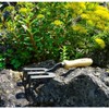 The DeWit Bent Tine Fork is a must-have for any gardener, designed for breaking up and aerating soil while easily removing weeds and rocks. Crafted from hardened boron steel and heat-treated for exceptional strength, this tool is built to last a lifetime. The comfortable hardwood ash handle is sustainably sourced from FSC-certified forests, ensuring both durability and environmental responsibility. Manufactured in Holland with expert craftsmanship, this versatile fork is perfect for any gardening task.