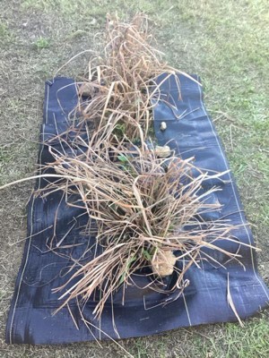 [This review was collected as part of a promotion.] I used this for a portion of the yard. In the picture it’s some lemongrass I put it around. I measured as best as I could and cut accordingly. Right now I put some rocks around it to weigh it down. It’s like a tarp but more breathable. It wasn’t that heavy and some basic scissors worked well enough to cut it.