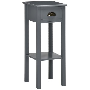 2-Tier Side Table with Drawer, Narrow End Table with Bottom Shelf, for Living Room or Bedroom, Gray