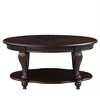 - Solid Wood Construction: The four table feet are made of solid rubber wood, not particle board, which makes the coffee table to be stable and durable with strong load-bearing capacity. The surface of top and shelf are both made of MDF with wood veneer, not stickers, which is more scratch-resistant and heat-resistant, so no worry about damage to your tabletop. if it's filled with hot objects. The oval shape is safer, you don't worry the safety when your family is playing in the living room.