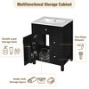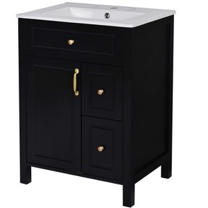 Transform your bathroom with our 24-inch white vanity, a perfect fusion of elegance and practicality. Imagine the smooth, easy-to-clean ceramic sink, accented by the gleam of golden vintage metal handles. The soft-close drawers glide open with a whisper, revealing generous storage for all your essentials. Double racks on the door keep your space organized and tidy, elevating your daily routine.