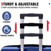 - Telescopic Handle: 3-level adjustable handle to meet the needs of users of different heights. 24-inch checked luggage size: 15.9 x 10.2 x 25.8". Ideal for long-distance trips.