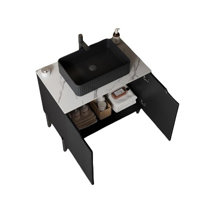 And the double doors of bathroom vanity built-in soft close damper to ensure the doors close quietly and smoothly, dampens the banging the sound of any slamming of the doors, also prevent the finger pinching.