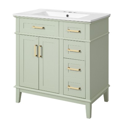 - [ Multi-Purpose Cabinet & Concealed Storage ] Are you looking for stylish and functional storage solutions for your bathroom? Our bathroom vanity provide ample space for all your toiletries and bathroom essentials. The combination of the cabinet body and the drawer perfectly stores all kinds of bathroom products and keeps the necessities away from water stains and dust. Soft-close doors and drawer fronts feature a water-resistant paint finish for durability.