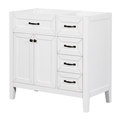 - Assembly Required: This bathroom vanity needs assembly. All the hardware(screws, metal door hinges and handles, drawer slides, anti-toppling device etc.) and instruction manual are provided. You can install it according to the instruction easily. Please be free to contact us if you have any parts missing.