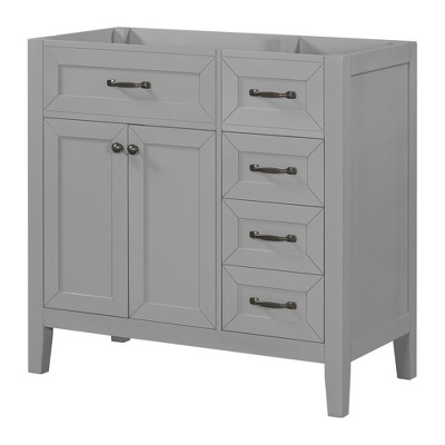 This 36" bathroom vanity is suitable for bathroom in any decoration style. Freestanding grey vanity cabinet with black handles complies with your bathroom facilities. The groove design on the door and drawer increases the artistry and aesthetics of the home environment. If you're looking for a simple but stylish bathroom sink vanity, our product will be a great choice to upgrade your bathroom.