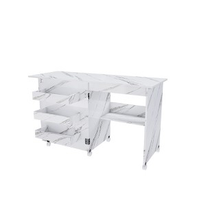 - 【Smart Storage Solutions】Smart Storage Design: This craft station features 4 fixed shelves (including a middle shelf) for reliable organization. Keep everyday tools within easy reach while storing bulkier items below—perfect for sewing kits, craft supplies, office essentials or kitchenware. The permanent shelf layout ensures stable storage while maintaining complete visibility of all items.
