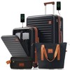 4-Piece Luggage Set with USB Charging Ports - 20in Carry-On (Front-Opening for Laptop) 28in Checked Suitcase with TSA Lock Travel Duffel Bag Wet-Dry Toiletry Bag, black and brown