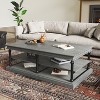 - Spacious 55.1"L x 31.5"W x 19.25"H coffee table with two open shelves provides generous storage and display space for books, décor, and daily essentials.