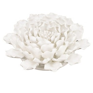 Crafted in a refreshing cream shade and detailed with textured petals, this 3-dimensional handmade flower wall decor creates a stunning wall display or a striking decoration on a table or shelf. The flower lends an elegant touch to your decor.