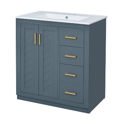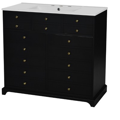 Dexmalle Black 30'' Bathroom Vanity without Sink,Solid Wood Frame Bathroom Storage Cabinet Only