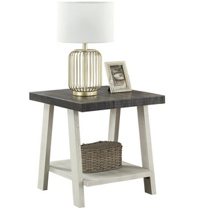 Contemporary Two-Tone Wood Shelf End Table in Weathered Charcoal and Beige