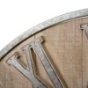 This wall clock will add farmhouse inspired flair to your space. Its galvanized iron design over a wooden background allows it to blend with any decor. It’s the perfect clock to complete a variety of styles.