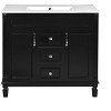 This 36-inch black ceramic basin bathroom cabinet is made of high-quality MDF and solid wood frame, which is both exquisite and practical. Its modern and simple style can not only add a stylish touch to the bathroom, but also has superior durability and stability. The perfect match between the black ceramic basin and the cabinet body highlights a sense of low-key luxury.