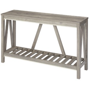 Console Table, Farmhouse Entryway Table with Storage Slatted Shelf, Rustic Sofa Table with Anti-Tipper for Living Room, Hallway, Gray