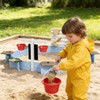 - Fun Toys: This kid's sandbox can be used to play with sand or water; it provides options for kids, letting them do more creative activities. This sandbox includes a scale, two plastic buckets, five play-with-water and sand accessories, and a blackboard.